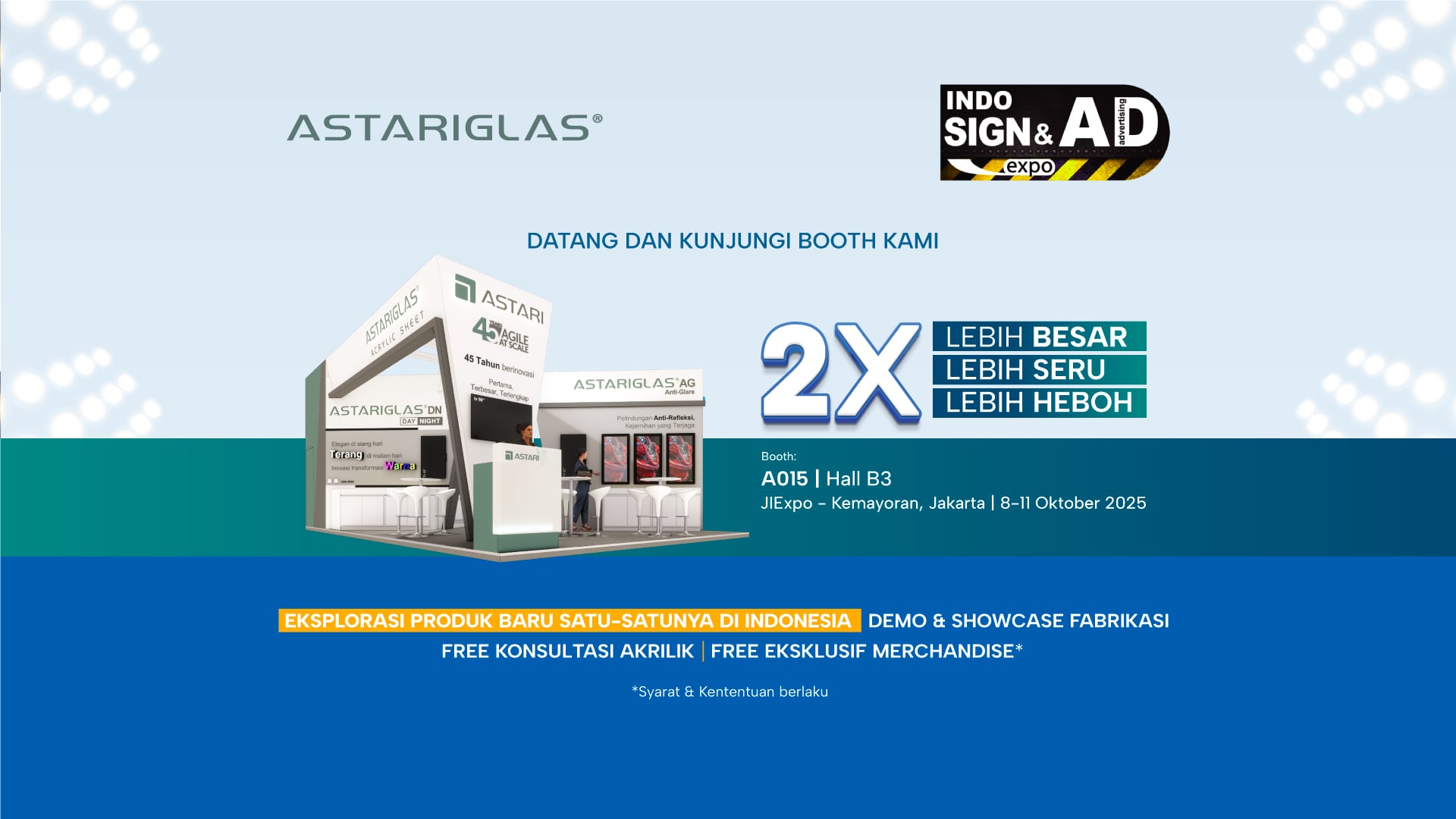 Kunjungi booth ASTARIGLAS® Hall B3 No. A015 di INDOSIGN 2025